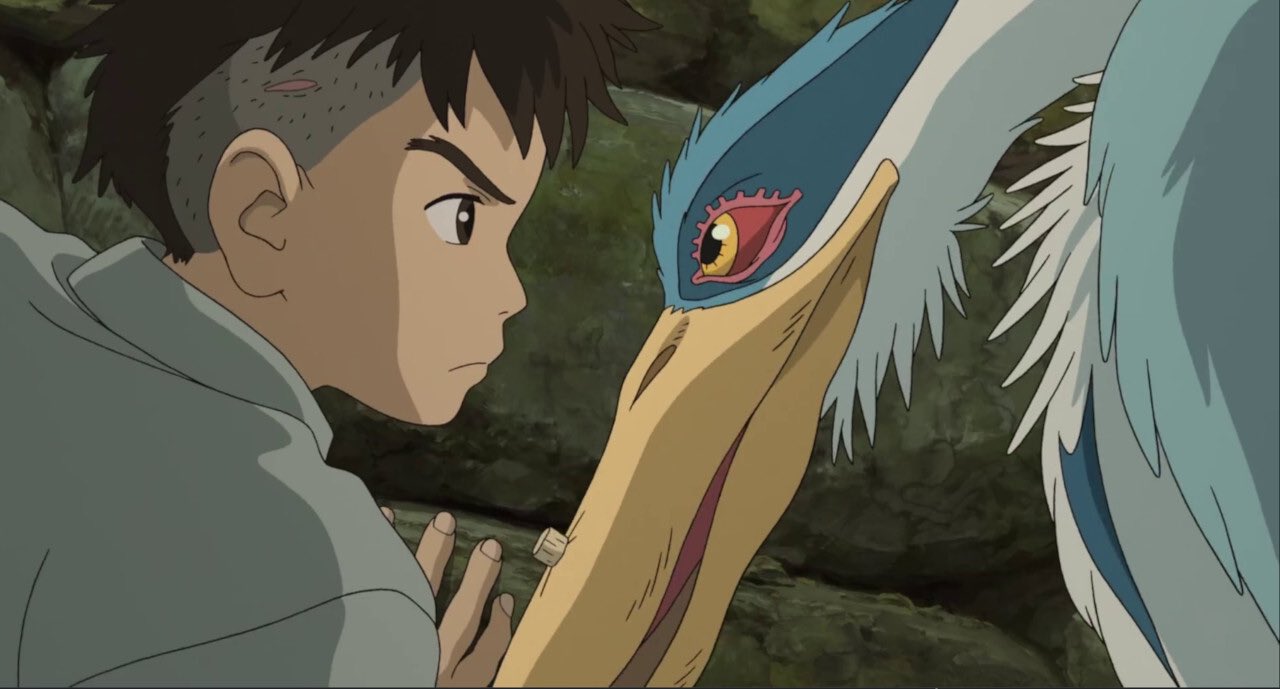 Mahito Maki, a twelve year old boy, is awoken to the sound of air raid sirens and his father leaving to rescue his mother, Hisako, who is working at the hospital downtown. Mahito follows after his father, rushing towards the towering inferno that has overtaken the hospital. The devastation reveals that Mahito’s mother was killed in the blaze. Miyazaki’s films have always dealt with mature themes, but this is by far the darkest and most intense opening scenes. Mahito’s desperation as he runs through the burning city is certainly the best animated sequence of this year, one that will stick with me for a long time. In the aftermath, Mahito and his father move out to a countryside estate owned by Natsuko, Hisako’s younger sister. The estate features a tower built by Mahito’s granduncle, a distinguished architect who vanished one day without a trace. Natsuko and Mahito’s father have since fallen in love and the two are expecting a child. Mahito resents Natsuko and has difficulty adjusting to his new life outside of the city, haunted by visions of the fire that took his mother’s life.