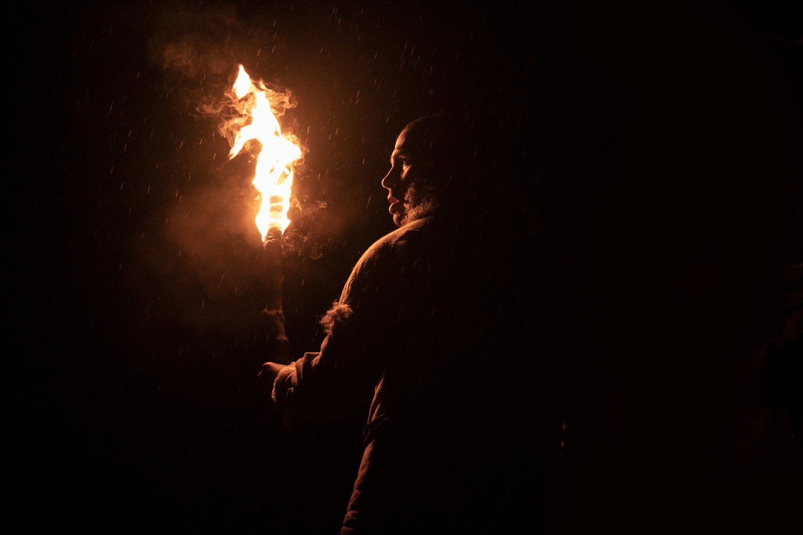 Most horror movies target and exploit our primal fears to achieve their onscreen scares. This film takes it a step further by sending the audience back to that time in human history. A time when having a healthy fear of the dark could spare you from getting eaten by a stealthy predator. As in its namesake, Out of Darkness relies on this fear more than anything else to drive a sense of mystery and dread in the audience. The orange glow of the campfire is often the only source of light in these scenes, the pitch black abyss shrouding everything just outside their basecamp. It is especially effective when viewed in a movie theater, the flicker of the flame intermittently illuminates portions of the auditorium, enhancing the sense that we are also sitting in the dark with the tribe. At times it had me looking over my shoulder to make sure there weren’t any saber tooth cats lurking within the theater crowd, not an easy feat for any horror movie.