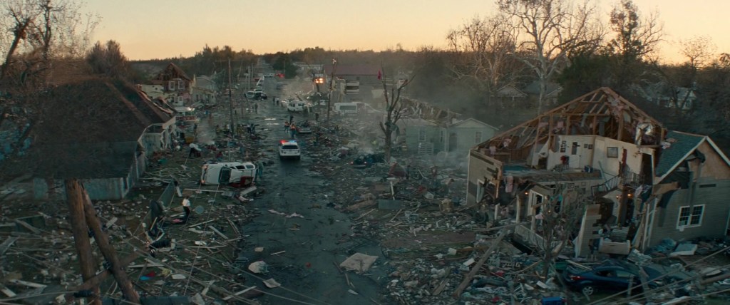 If that didn’t convince you, the final act will, as the most aggressive twister in the entire film tears through an oil field, whipping up a cyclone of flames. A deadly, firestorm fueled by oil production is about as blunt of a global warming metaphor as you can get. Yet, the words “climate change” are not uttered even once during the film’s entire runtime. That is a deliberate choice. A cowardly one too.