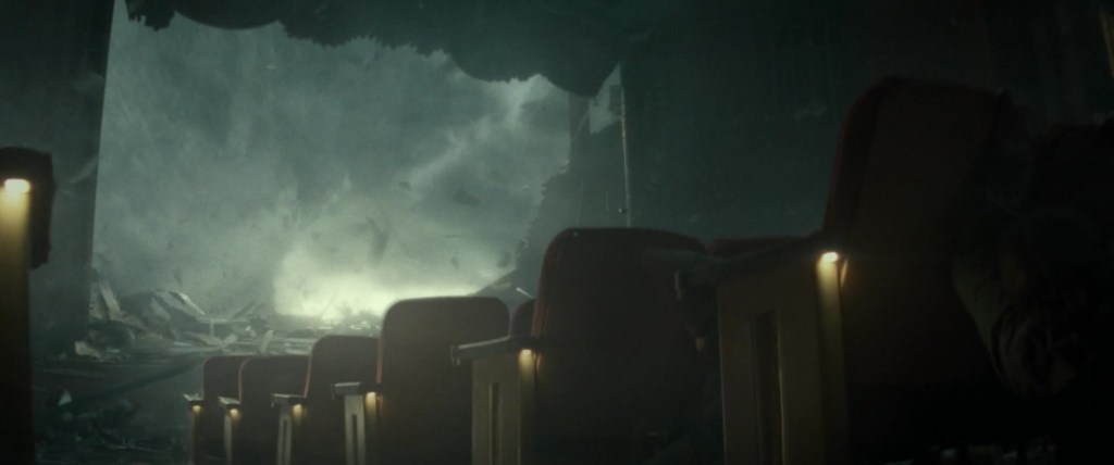 The finale takes place in an old movie house in the town of El Reno. There’s a flurry of kinetic energy throughout this last sequence, but I’m a sucker for movies with scenes inside of movie theaters. Citizens of El Reno take shelter at the theater as the film’s largest tornado yet barrels towards them. Playing on screen is James Whale’s 1931 film Frankenstein, a deliberate choice by Chung to connect his Universal Pictures sci-fi spectacle with the movie that started it all. As the winds rage on, the theater screen is sucked out of the building revealing a perfectly framed twister where the movie once was. One of my favorite shots of the year. Even after watching this three times, it still makes my stomach drop.