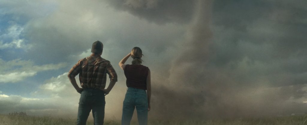 Lee Isaac Chung was a surprising choice to helm a summer blockbuster. Most known for his autobiographical indie darling, Minari, the leap to a high concept, special effects heavy, legacy sequel doesn’t quite make sense. At least on the surface. Chung credits his experience directing an episode of The Mandalorian as his entry into this style of directing. Additionally, both Minari and Twisters are set in tornado alley, with Chung spending most of his childhood growing up in Arkansas. In his pitch to Steven Spielberg and the other executive producers, Chung edited a supercut of footage from the 1996 film and Minari as a proof of concept for the kind of story he wanted to tell in the sequel. His admiration and respect for this part of the country is felt in every aspect of the finished film, capturing the rolling beauty of Oklahoma’s great plains.