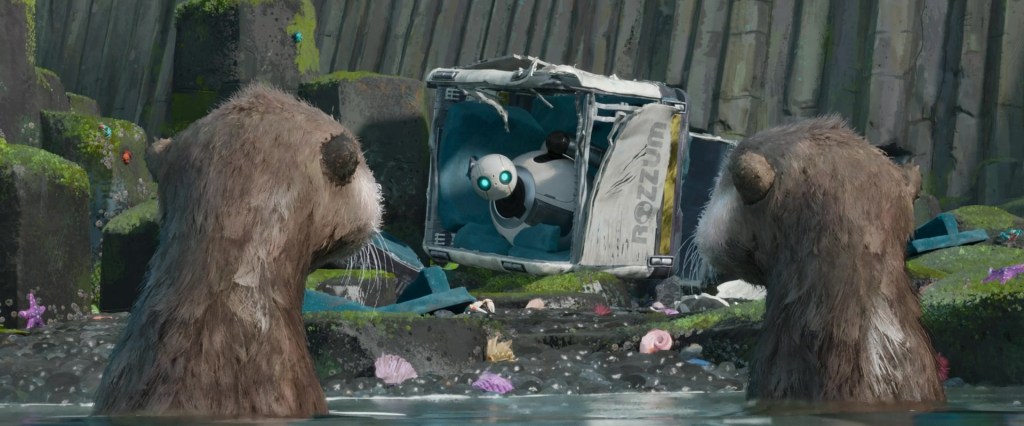 After a storm causes a Universal Dynamics cargo ship to crash on the coast of an untamed island, the sole surviving robotic unit emerges from the wreckage in search of the customer who ordered her. ROZZUM Unit 7134, played by Lupita Nyong’o, nicknamed “Roz” wanders haplessly around the island, seeking a designated task and purpose, but is unable to communicate with the forest animals. She updates her language processors in order to better understand the needs of the island’s inhabitants, but is disappointed to learn that all of the animals fear her. With no tasks to complete, she fires up a retrieval signal to be returned to the factory she came from. But a bolt of lightning strikes, frying her communication beacon, and in a panic she flees accidently crushing a goose nest in the process. One single egg remains and Roz makes it her responsibility to keep it from harm’s way.