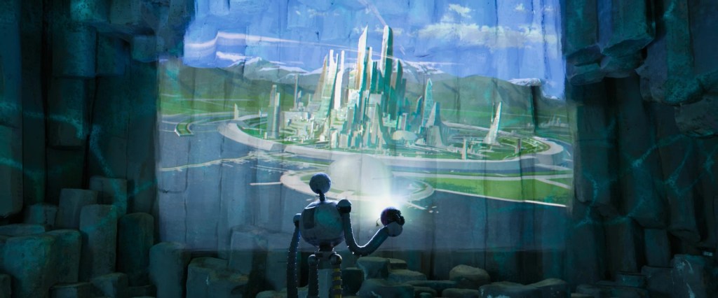 It is easy to get swept away by the vivid watercolor textures and natural vistas of The Wild Robot’s world. The film draws stylistic inspiration from Disney animated classics and the work of Hayao Miyazaki. The forest environments of the island were heavily inspired by the hand painted backdrops of Bambi and My Neighbour Totoro. Sanders was dedicated to creating a film where the final result still resembled the concept paintings used in development.