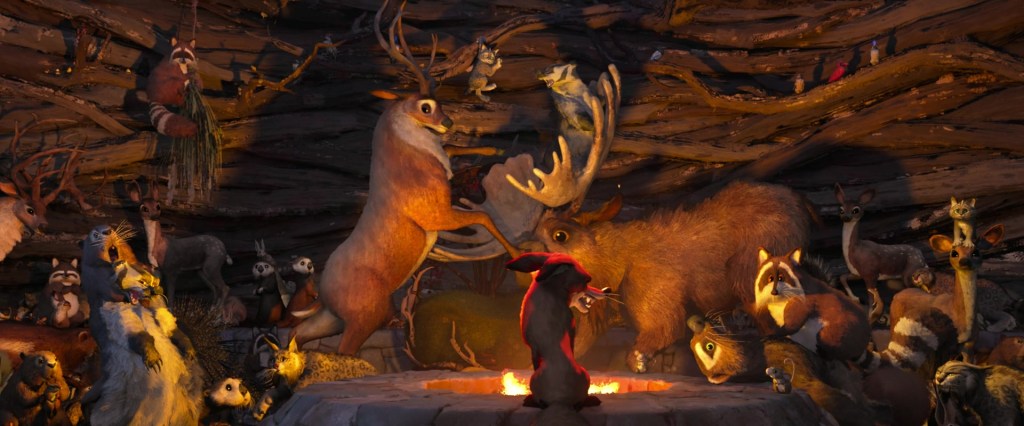 Early on, Fink cynically chastises Roz for her naivete and willingness to trust him. “Kindness is not a survival skill.” A philosophy garnered from a life of competing for resources and avoiding becoming someone else’s meal. While this ruthless worldview has some merit for surviving conditions in the wild, it is not sustainable for the collective wellbeing of all the animals. Eat or be eaten no longer works if there’s no one left alive. During a deadly winter storm, Roz and Fink set out to rescue the other animals whose dens are buried under piles of snow. They return them to Roz’s makeshift shelter where they can warm up by the fire. However, all of those predators and prey animals under one roof proves to be disastrous.