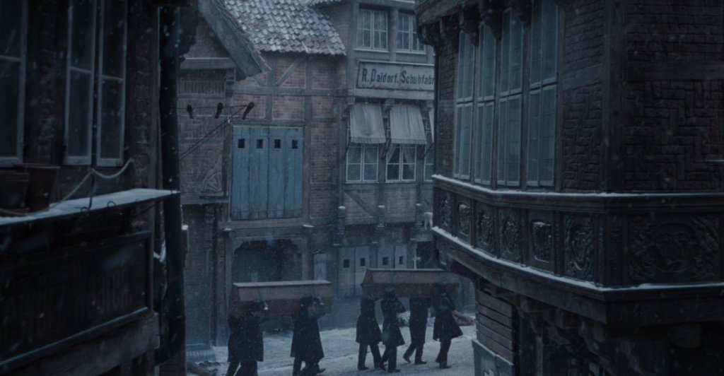 Ralph Ineson is the unsung hero of the first act. Dr. Sievers is quick to sound the alarm when the affliction that takes hold of Wisborg appears to be more than a mere plague. His academic authority gives credibility to the otherworldly explanations. Ineson’s understated portrayal guides the audience to this understanding organically. Little explanation is needed as he establishes himself as a trustworthy source early on.