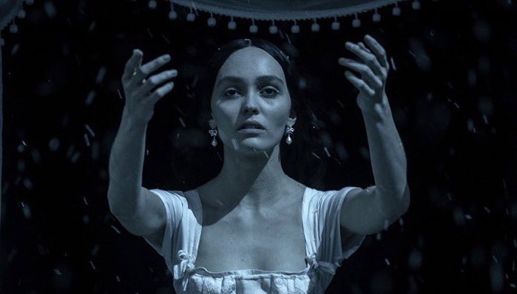 Lily-Rose Depp delivers a career defining performance as the romantically tortured Ellen. It’s shocking how much she looks and sounds like she was plucked directly from the 1800s. Fully committed with every guttural gasp, every extended shaky hand, and every haunted look of pure doom. She sputters and convulses on the floor in both agony and ecstasy as the vampire’s hold over her grows stronger. It is repulsive and difficult to look at, yet just as difficult to pull away from. Her pain is your pain. Her pleasure is your pleasure.