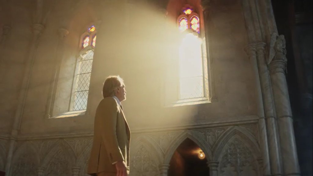 Years later, Jefferson Wicks leads hateful sermons, designed to alienate all but the most devoted of his flock. Jud pushes the Monsignor to lead with more grace and humility, but is shunned by the churchgoers. In the middle of a Good Friday service, Wicks suddenly collapses in a nearby storage closet. Jud rushes to his side and notices a knife has been stabbed through Wicks’s back with a devil head adornment attached. It is the very same piece that Judd had angrily thrown into the church window the previous night after stealing it from the bar. All the evidence begins to suggest that Judd is responsible for Wicks’ death. Detective Benoit Blanc arrives soon after and, certain of his innocence, works with Father Jud to solve this holy whodunit.